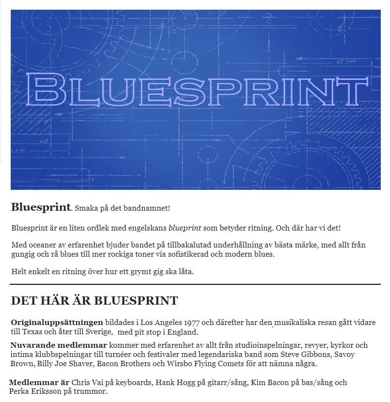 Bluesprint är en liten ordlek med engelskans blueprint som betyder ritning. Och där har vi det!