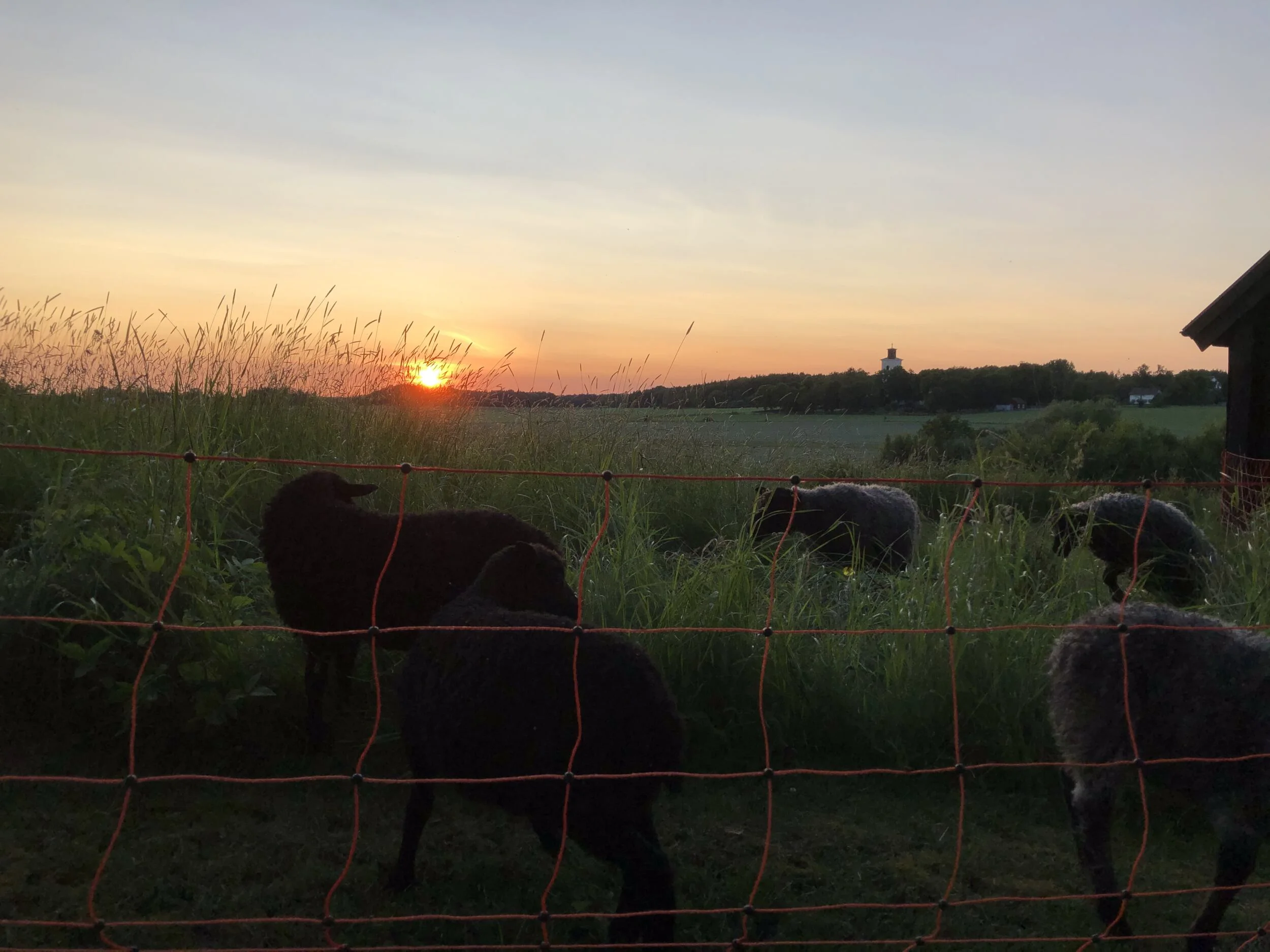 Den lilla fårbesättningen vårdar landskapet runt gården och ger kött och skinn. De lockiga skinnen kan du köpa bland annat hos Dunderbo Ljus & Hantverk, medan köttlådorna förbeställs direkt av Åsa.