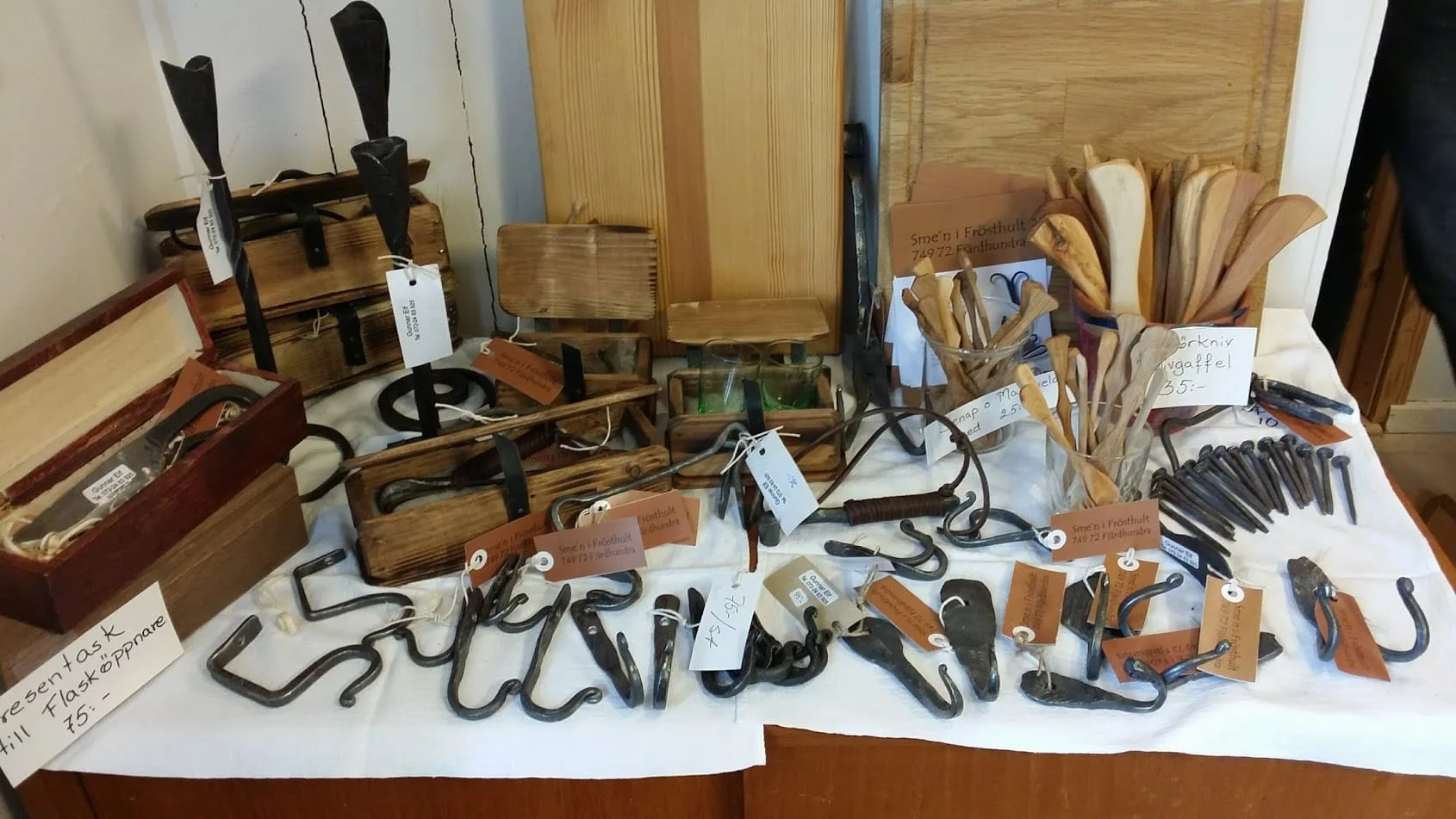 Gunnar Elf smider ofta och mycket – för han tycker att det är så roligt! Krokar, ljusstakar, knivblad, haspar, en finurlig hållare för wettex-trasan… han producerar en strid ström av föremål som bland annat finns till försäljning hos Dunderbo Ljus och hantverk. Det är inte bara svartsmide Gunnar ägnar sig åt, utan även träslöjd av olika slag kommer från hans flinka fingrar. Är det något särskilt som du vill ha tillverkat, kanske ett par gångjärn till trädgårdsgrinden eller en speciell ljushållare, så smider han med nöje på beställning.